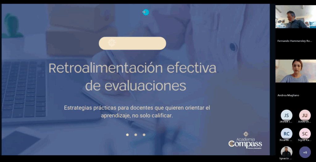 Durante abril y mayo de 2025, docentes de distintas carreras de Duoc UC participaron en una capacitación en retroalimentación formativa, desarrollada por Academia Compass, consultora especializada en formación docente y educación técnico-profesional.